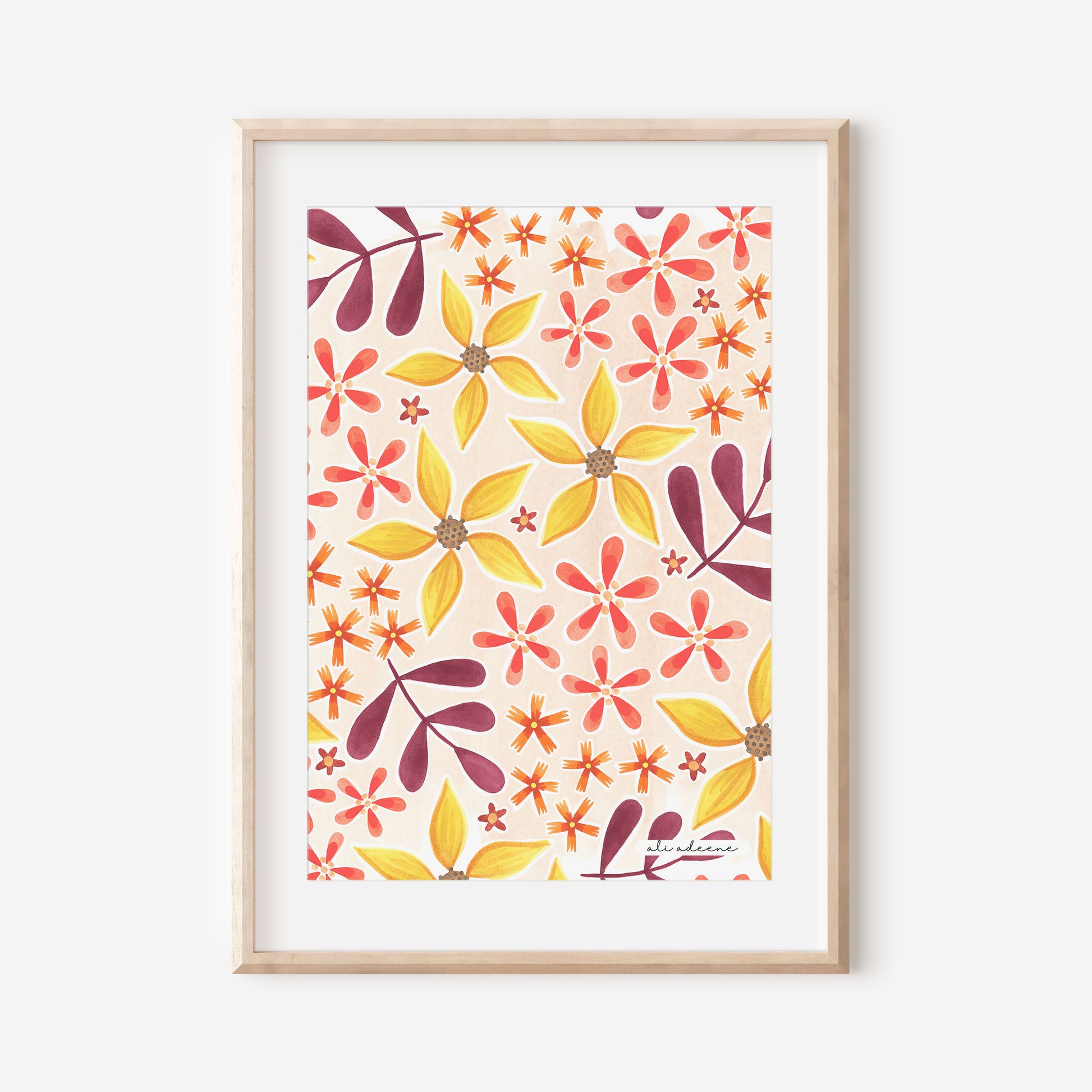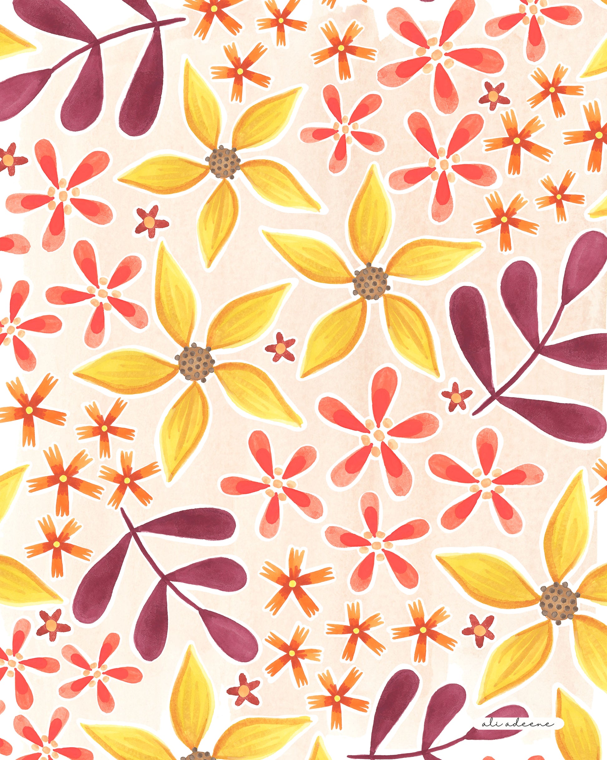 Each element is hand painted with watercolor, and then assembled digitally to create the final design. A small ‘Ali Adeene’ logo is printed in the bottom-right of each print.