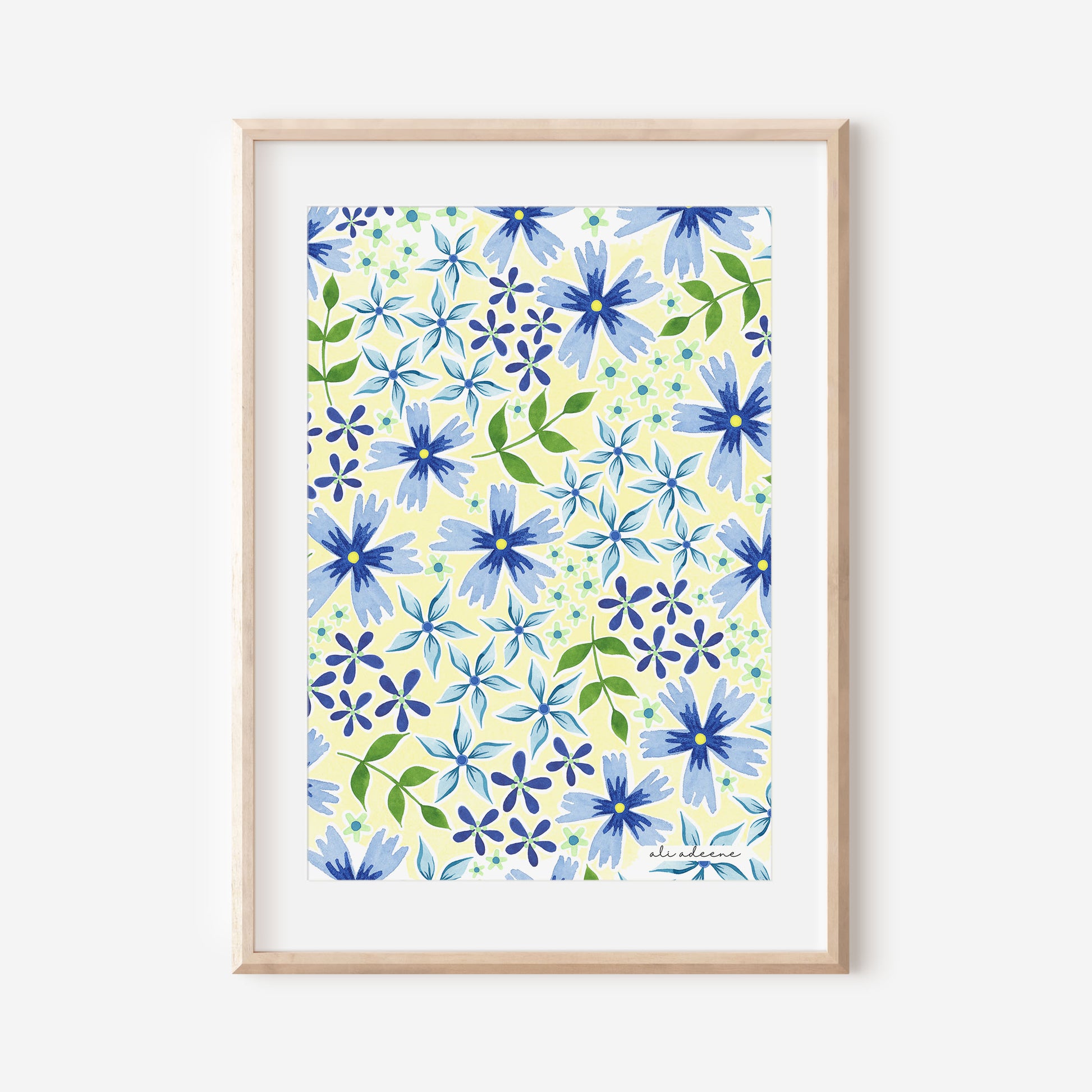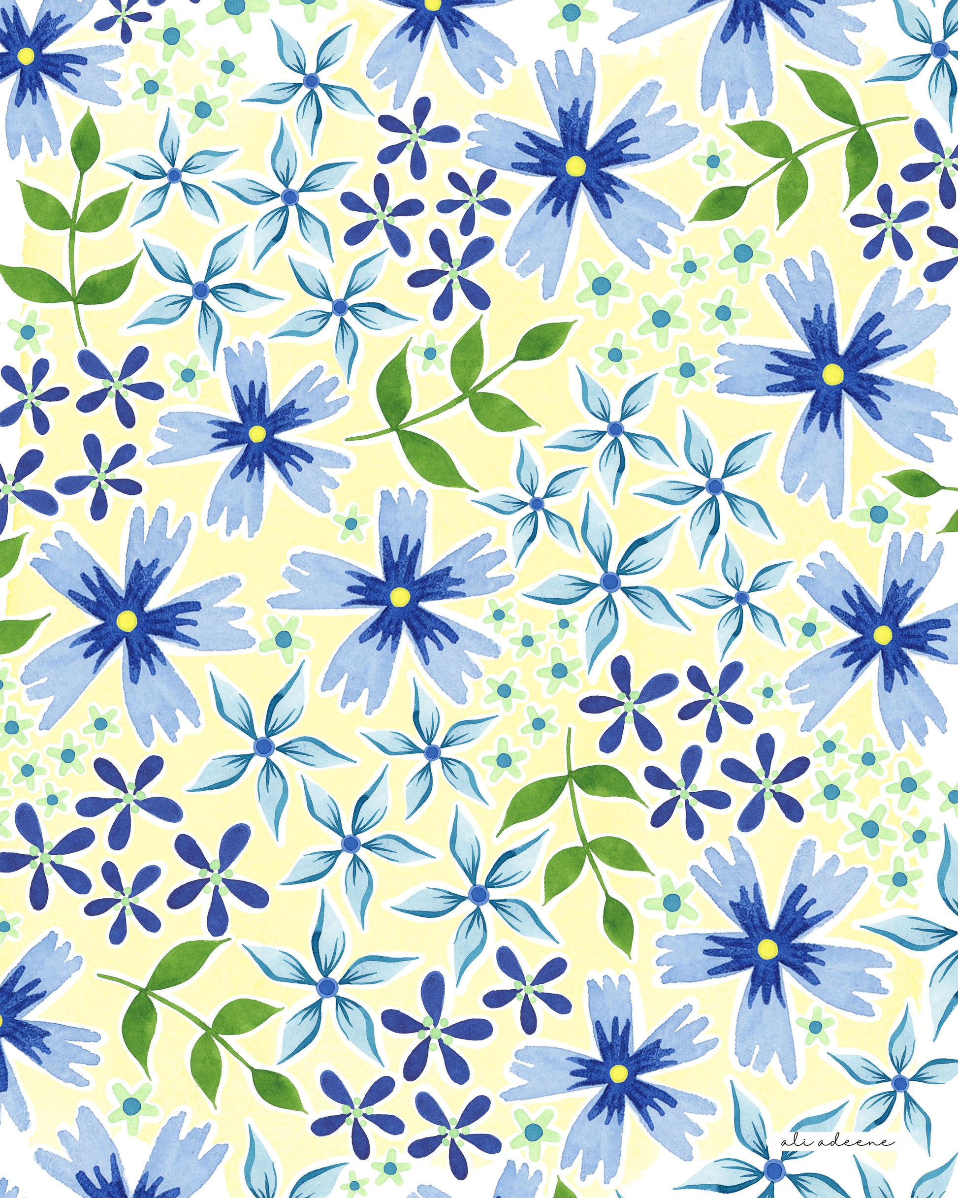 Each element is hand painted with watercolor, and then assembled digitally to create the final design. A small ‘Ali Adeene’ logo is printed in the bottom-right of each print.
