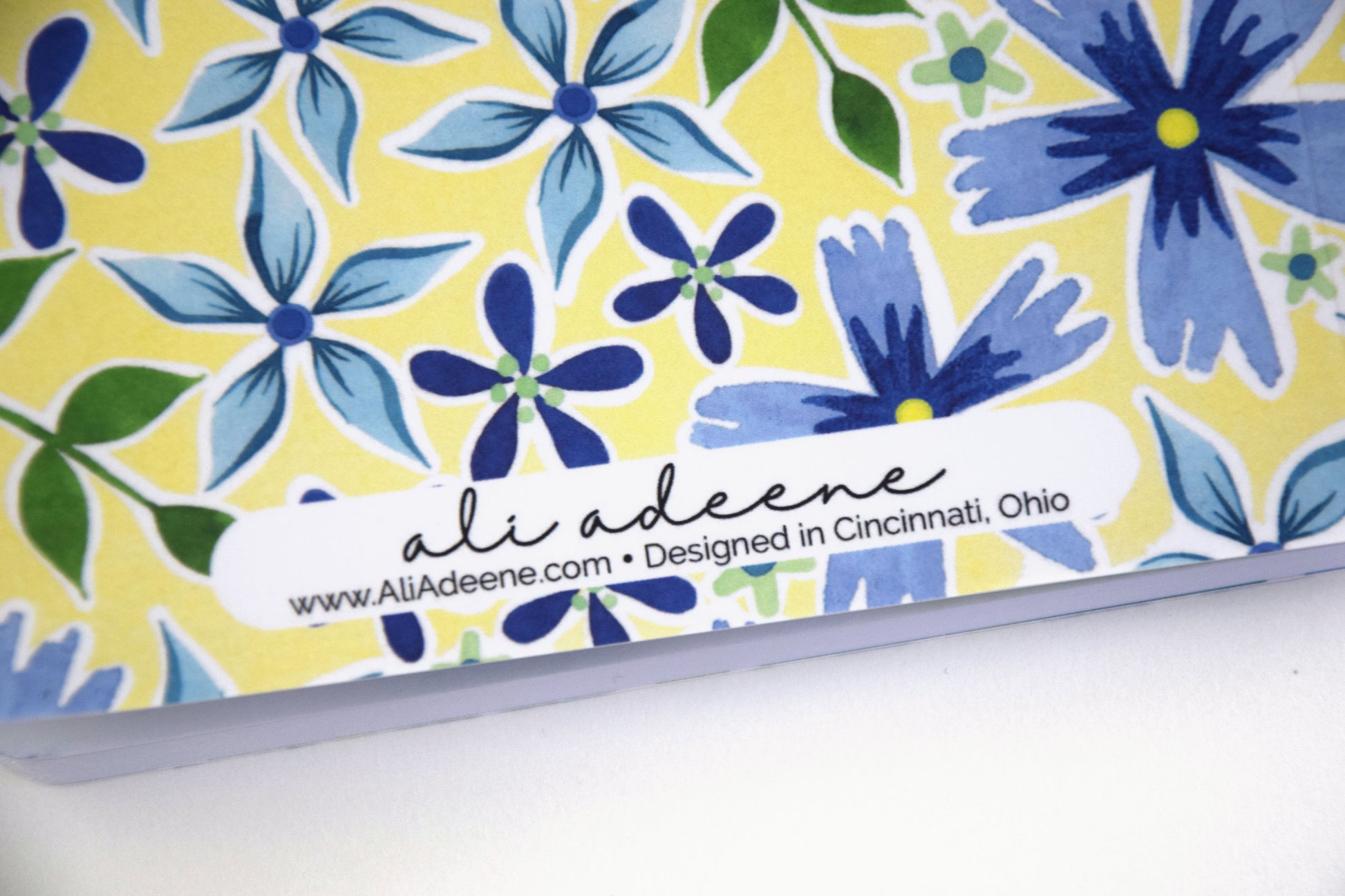 This notebook features TWO original watercolor patterns. The outside cover features “Blue Meadow”, while the inside cover has a blue swirl pattern.