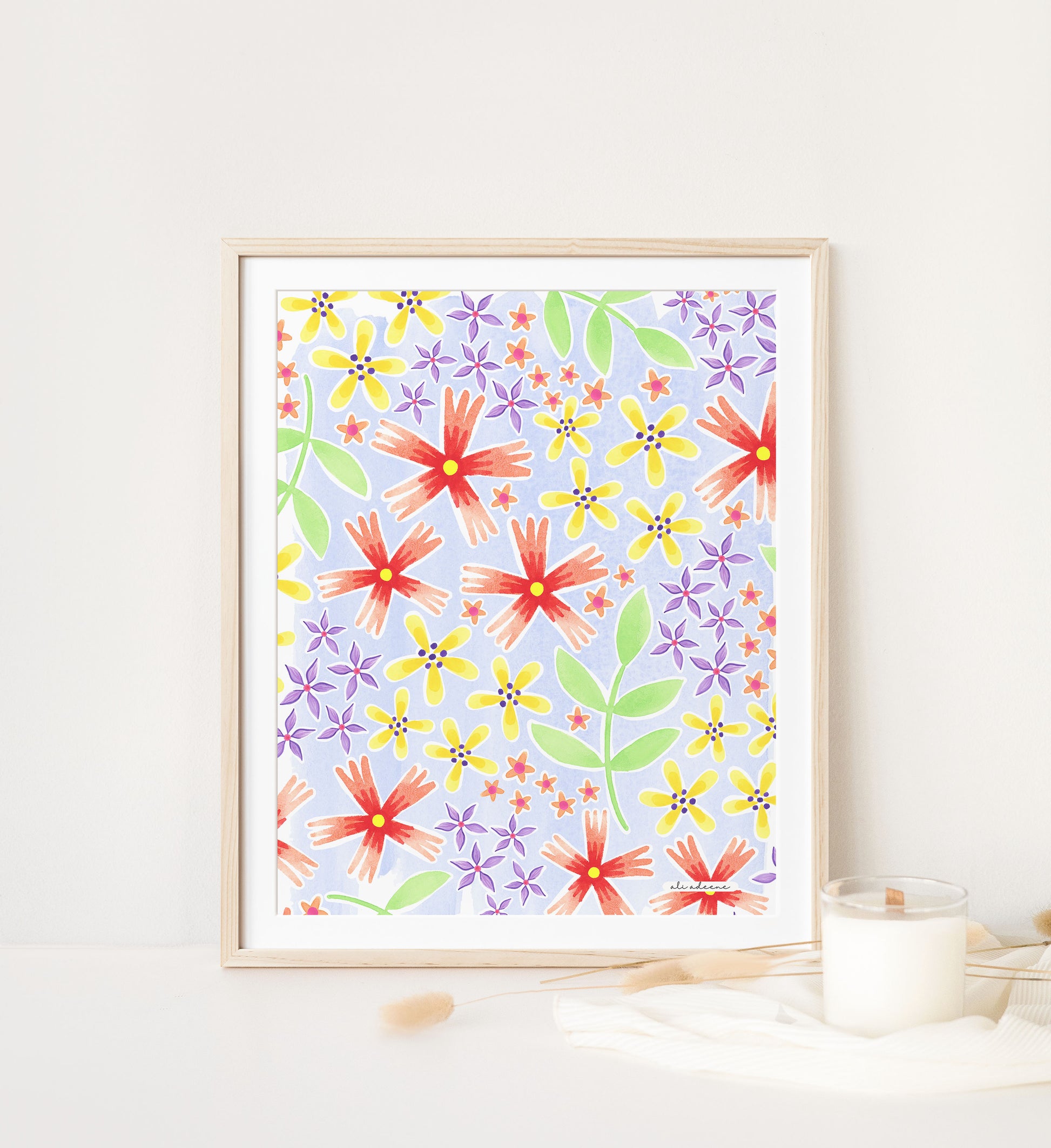 Each element is hand painted with watercolor, and then assembled digitally to create the final design. A small ‘Ali Adeene’ logo is printed in the bottom-right of each print.