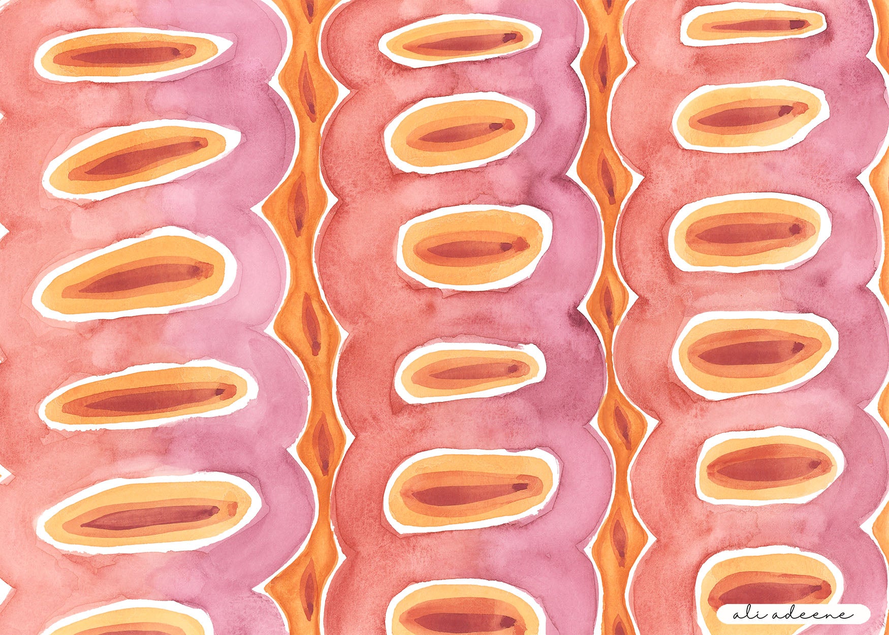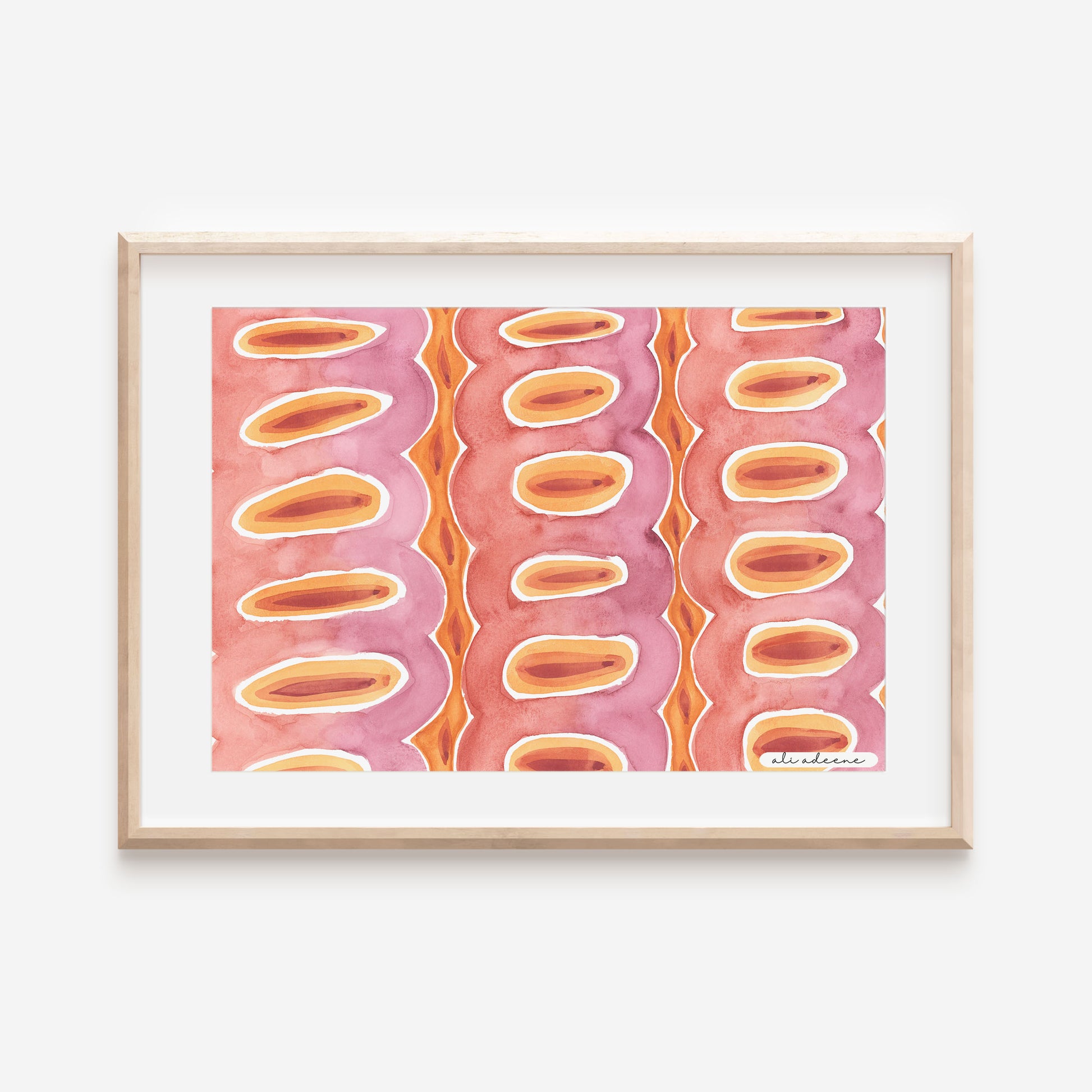 This print is a reproduction of an original, hand painted watercolor. A small ‘Ali Adeene’ logo is printed in the bottom-right of each print.