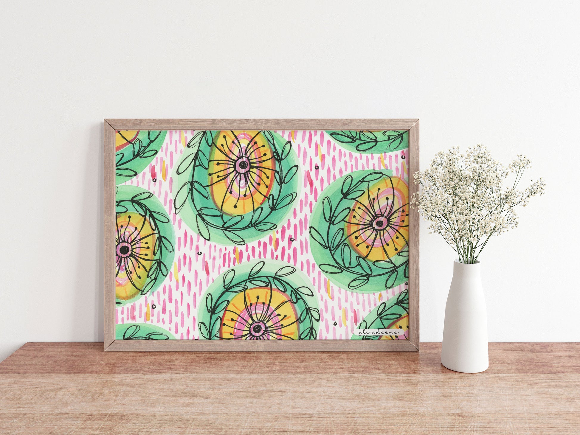 This print is a reproduction of an original, hand painted watercolor with black ink detailing. A small ‘Ali Adeene’ logo is printed in the bottom-right of each print.